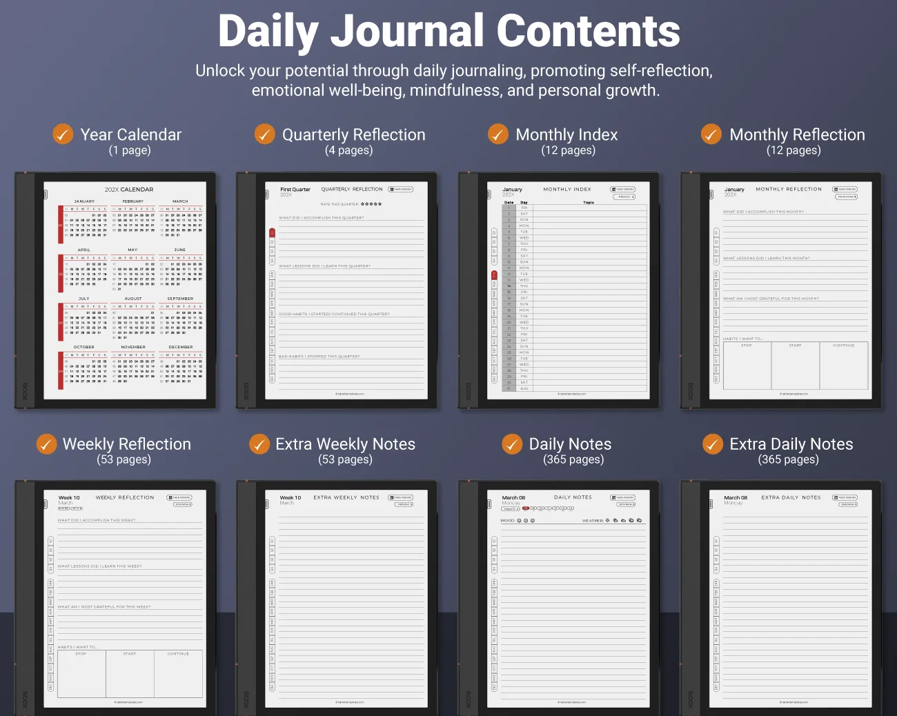 Whether you’re looking to enhance your self-awareness, improve your mental well-being, or simply record your daily experiences, our designed for Boox Journal is the perfect tool for you.