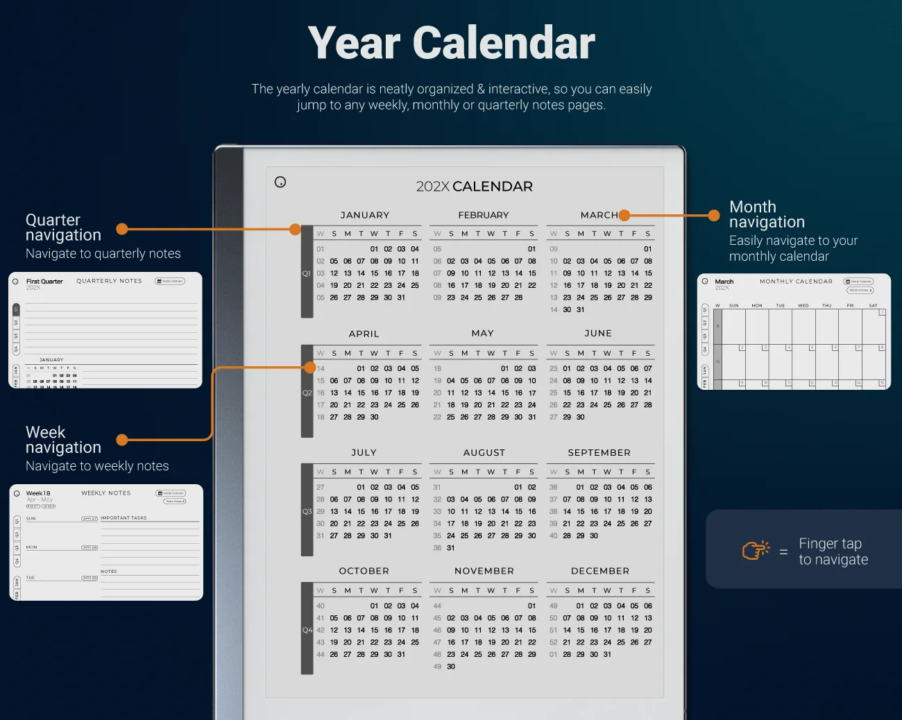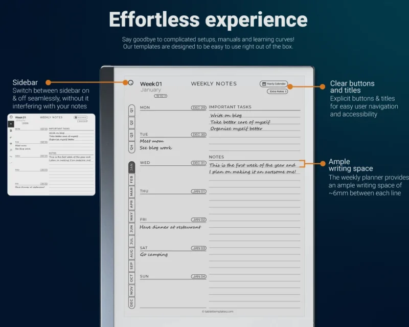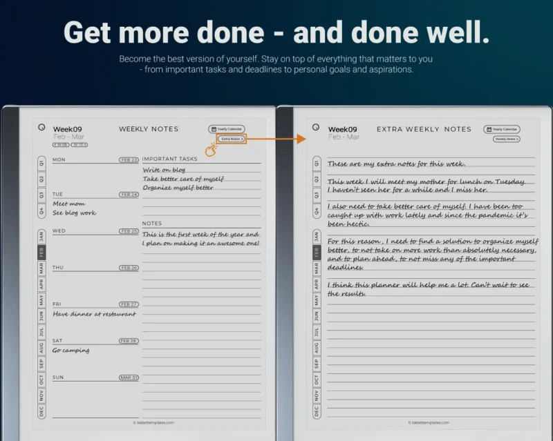 Organize your year, month by month, and week by week with our streamlined Weekly Planner for reMarkable 2.