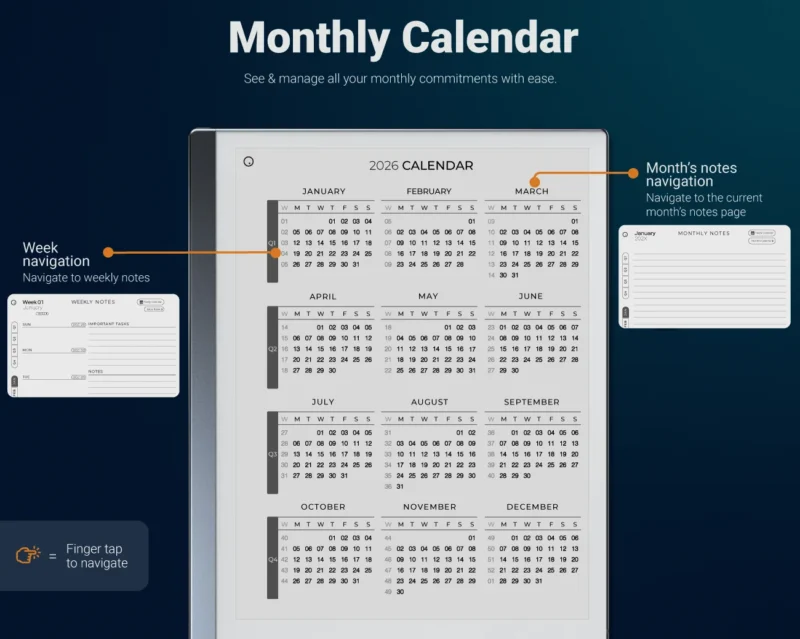 Simplify your routines, stay organized, and conquer your goals with ease with our Weekly Planner for reMarkable 2 2026 + 2027.