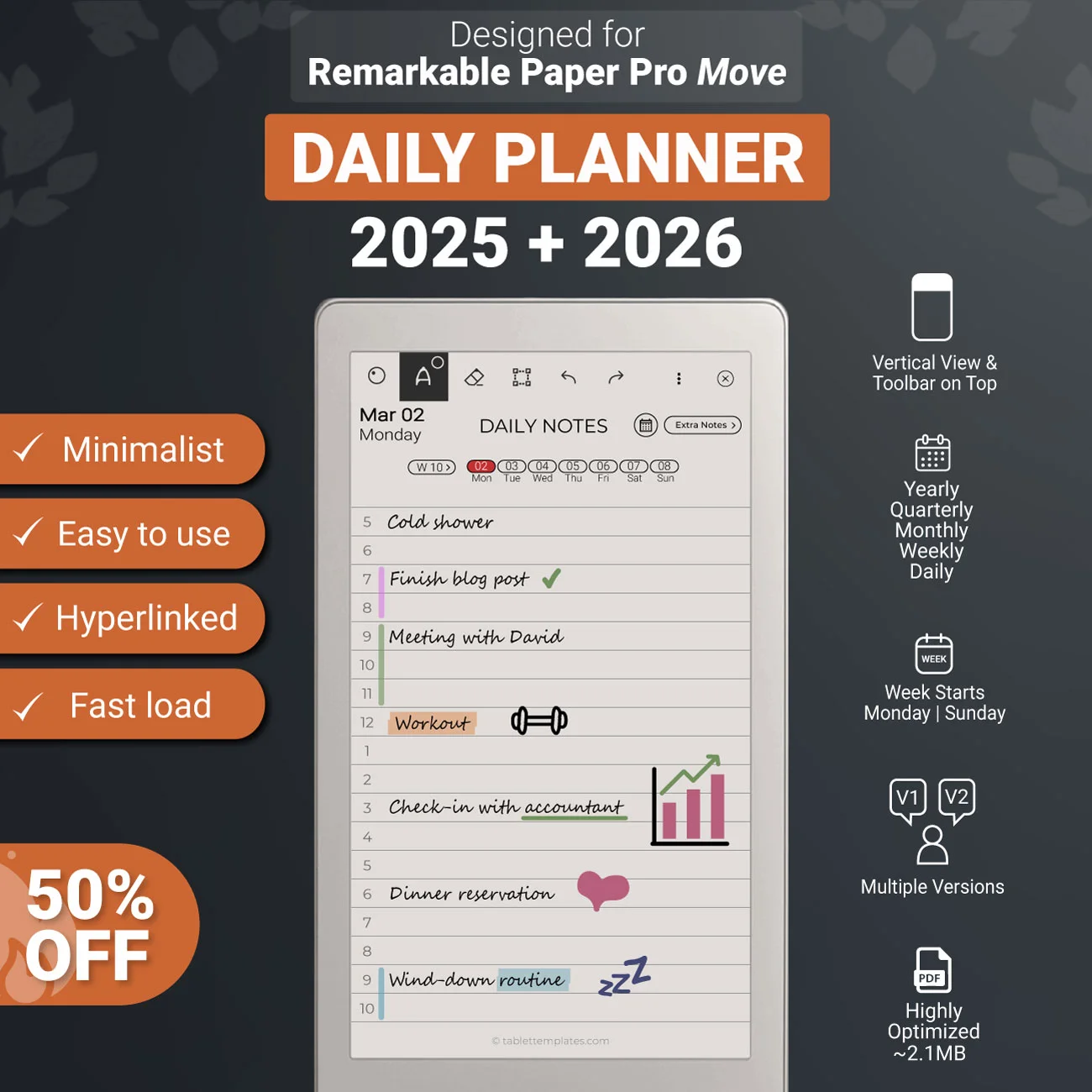 So why wait? Start organizing your life today with our designed for reMarkable Paper Pro Move Daily Planner and take the first step towards becoming the best version of yourself.
