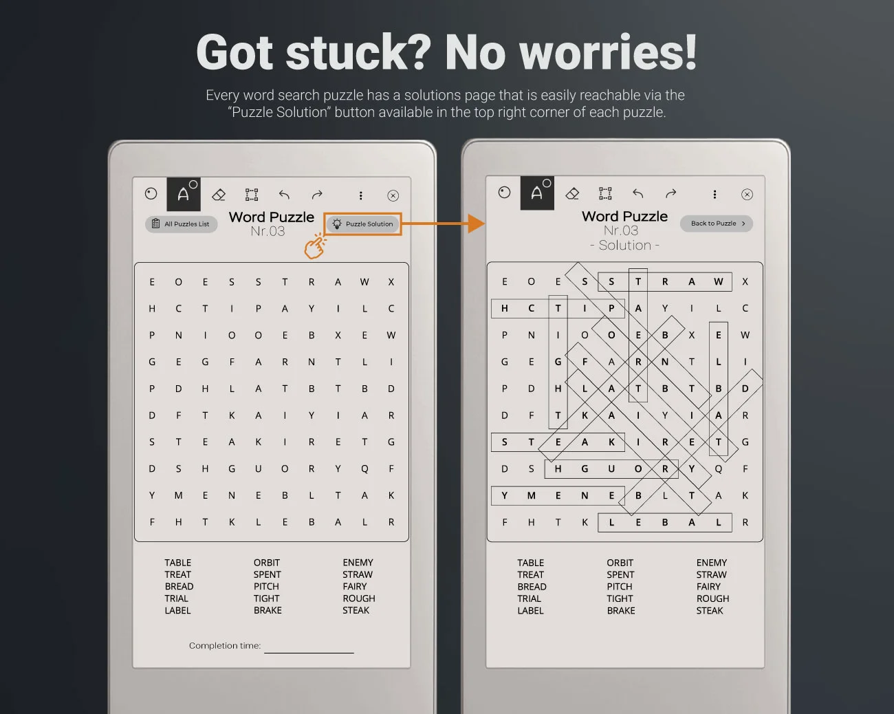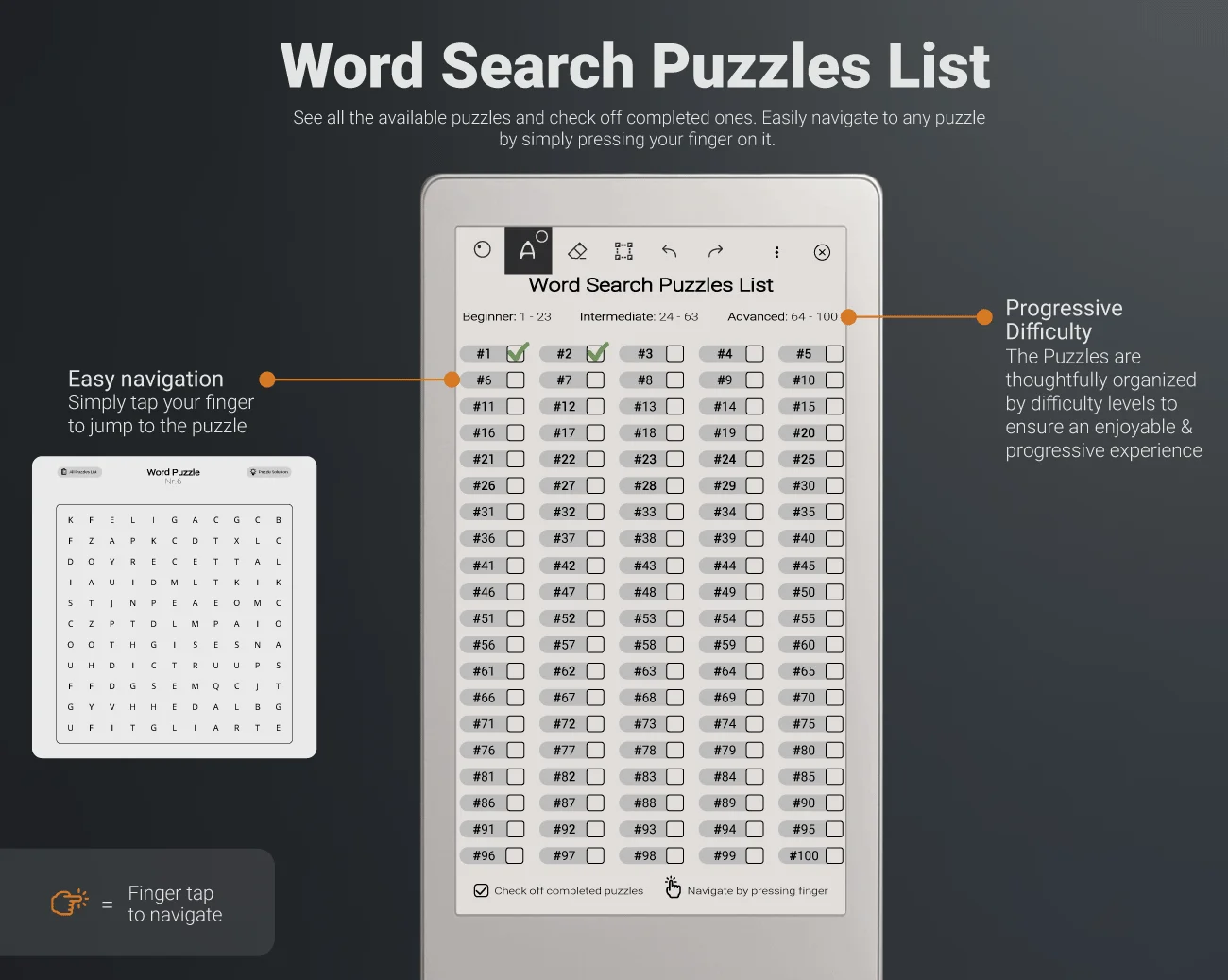 Our Word Search Puzzles for reMarkable Paper Pro Move are thoughtfully organized by difficulty levels to ensure an enjoyable and progressive experience for our customers.